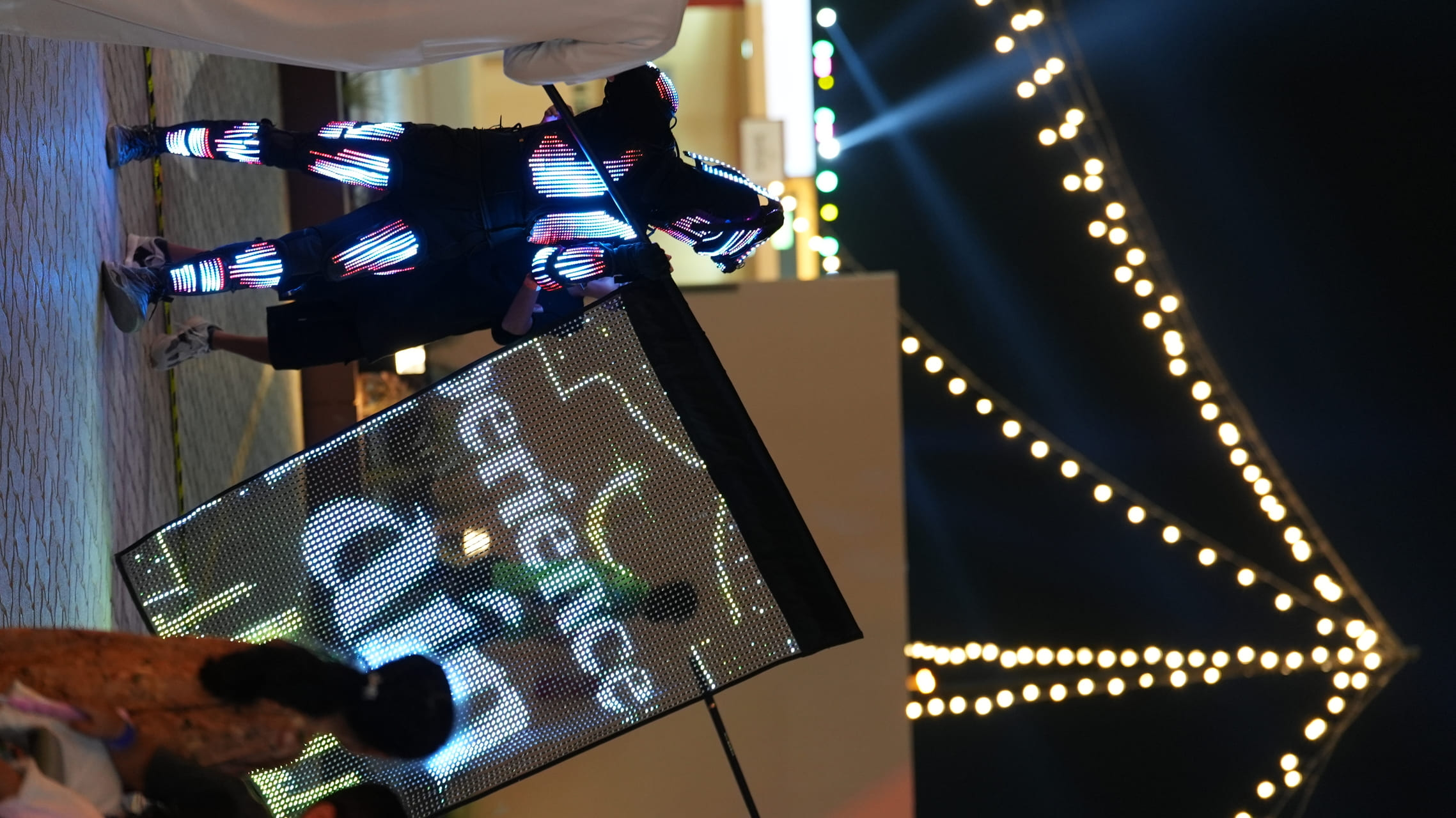 Thanks to our talented performers and innovative technology, we created an unforgettable atmosphere by showcasing logos and messages dedicated to this significant event. Every moment was filled with joy and energy, and we are proud to have been part of this wonderful celebration.